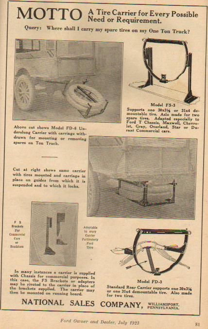 That carrier is intended to hold one 30 x 3 front tire and one 30 x 3-1/2 rear tire, un-mounted, without rims, for a car without demountable rims.