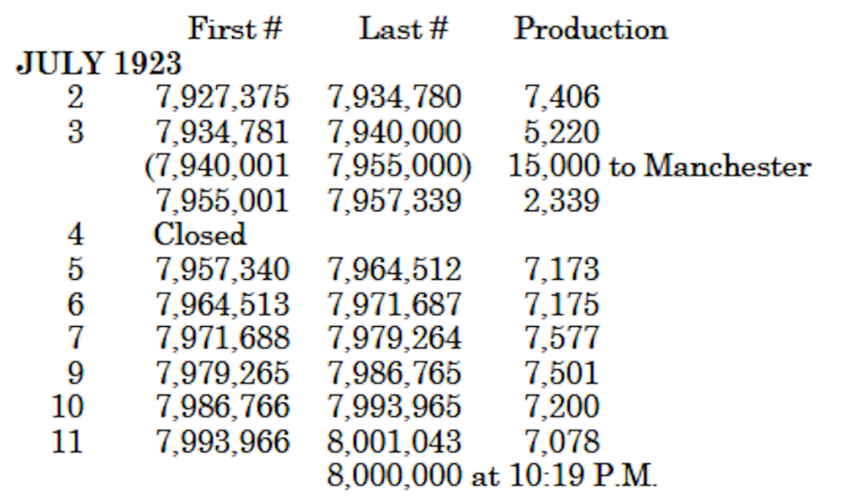After the Rouge plant began operation numbers issued at Highland Park and the Rouge are identified.