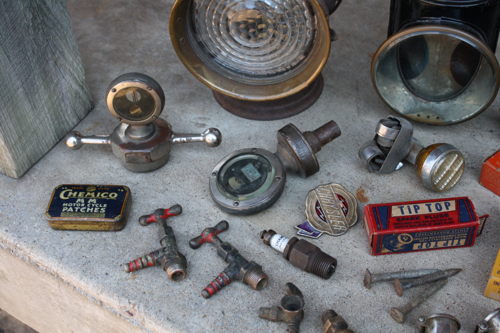 Hated to hear the news of next year being the last year, but we will be there in full force next year and try to "go out in style" So, everyone please plan on joining us next year, and lets make it a thing to remember. My favorite find this year is a "Old Sol" spotlight with the smallest "violet ray" lens I have ever seen. It matches the "violet ray" headlight lens on the speedster project, so the spotlight is destined for the speedster project. All the gas headlight parts are for the 1914 speedster that showed up at our house last fall. The unrestored headlight buckets were a pre swap meet buy delivered to the meet. Everything else was bought there. Lots of early stuff this year, and there were some really good prices. Here are some of the pictures I took, I broke my camera so I did not get as many as usual at the meet. The last bunch of pictures are my treasures I found this year
