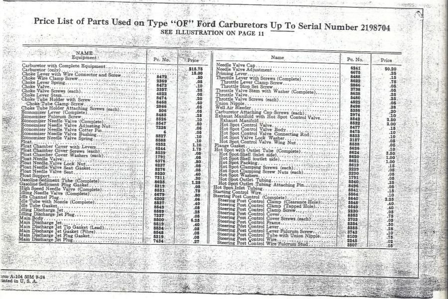 Brent: I've only done maybe 50 of these (nowhere near what Stan did) but over the years have acquired some knowledge about the usual weak spots and procedures in setting them up. I'd be glad to help with yours so send me a PM or email (or call at 613-258-0336) if you feel I could be of any assistance. They are amazing carbs and once you try one will probably never go back to any stock Ford offering. BTW, the Stromberg RF and Wheeler-Schebler FAX8 are every bit as good and in some ways better than the OF but never reached the popularity of the OF. The biggest problem now is that since Stan's passing (RIP) there is no one I know of making specialized parts for them.