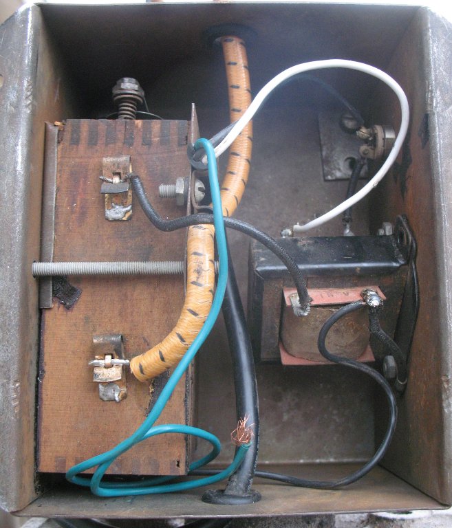 Here I have cleaned up the inside and installed a new power cord. The original 1932 transformer is still there, but I had to replace it after one of the terminals broke off and I was unable to fix it.