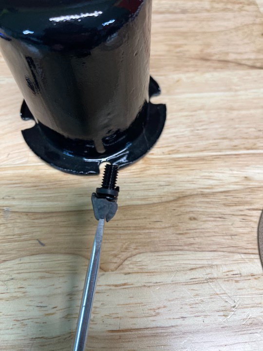 Then I had to hold the bar of metal jut right to screw the stud in.