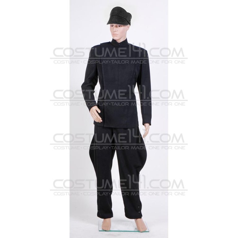 I ordered a Star Wars "Imperial Officers" costume in black from a cosplay place and added buttons. I bought a chauffeur cap from a party store and a pair of black boots from a cheap shoes outlet. I have tiny feet, so they are ladies' boots! A pair of gauntlets finishes off the outfit.