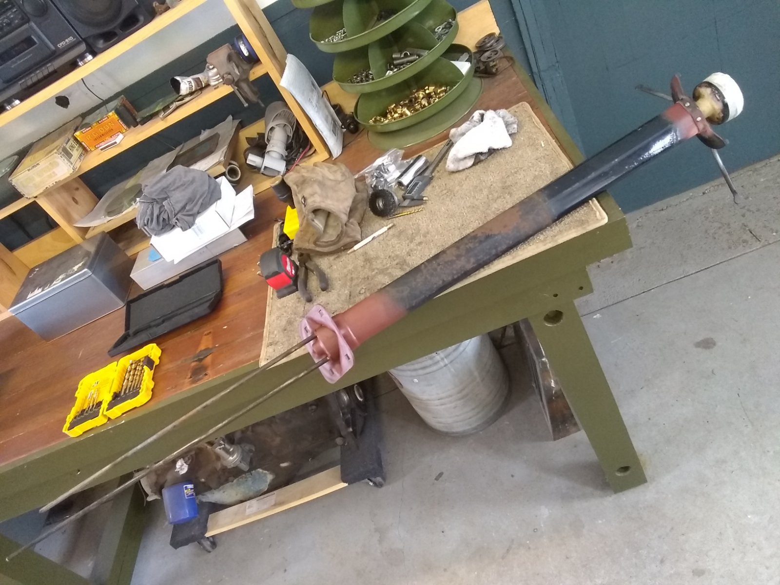 Work on the steering column has continued at a slow pace, I finally finished filling in the pitting and got it in the paint booth tonight...