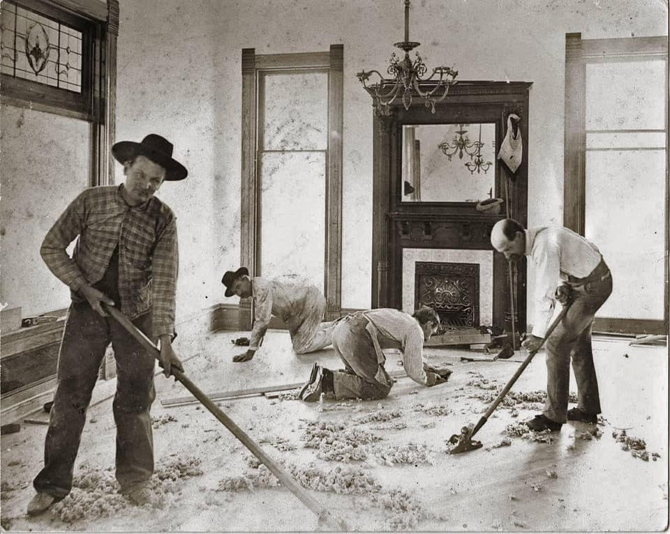 Bilford Stnotzworth and Eddie McHeadrub often stopped for the "hot soup" after their shift at the Helix Mill. Posed here maintaining the up-scaled Hoover & Kirby pumps.