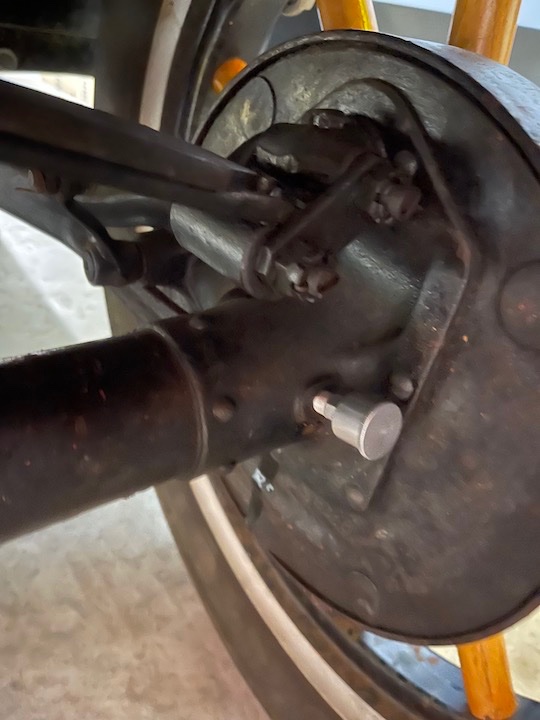 Scott mentioned the shoe that has a wide opening. The cams spread shoes at the openings. The highest stress on shoes with worn out linings is at a point opposite the open ends. Both of mine were bent out at that point, showing a gap there between linings and the drum. (I placed my shoes in a drum on the workbench as a guide to reshape my shoes.) Check, bend a little, repeat. I placed my shoes over the open jaws of a vise and gently tapped between the jaws until shoes fit well. Then I went after the linings with a rasp.