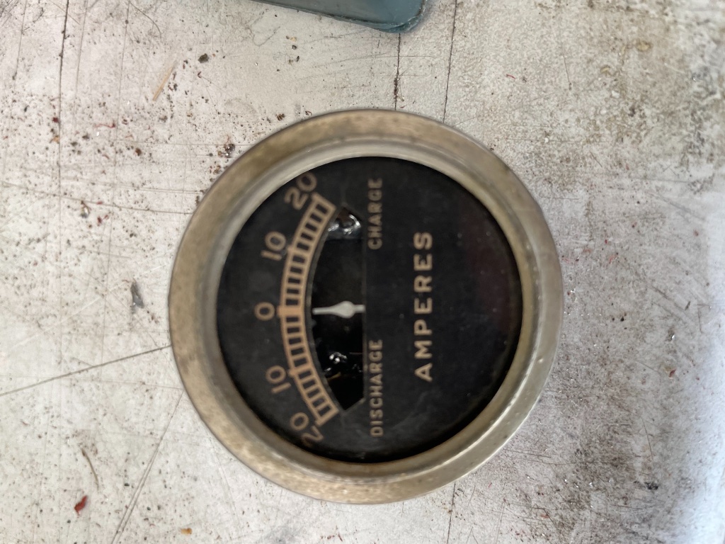 It's a chrome plated repop, of dubious quality. If you look closely the 20 on the discharge side is well under the rim of the meter while the 20 charge side sits nicely within the bezel. This shows the face is well off centre, to the discharge side, and still the needle points further to the left. Use it as an indicator rather than an accurate meter.