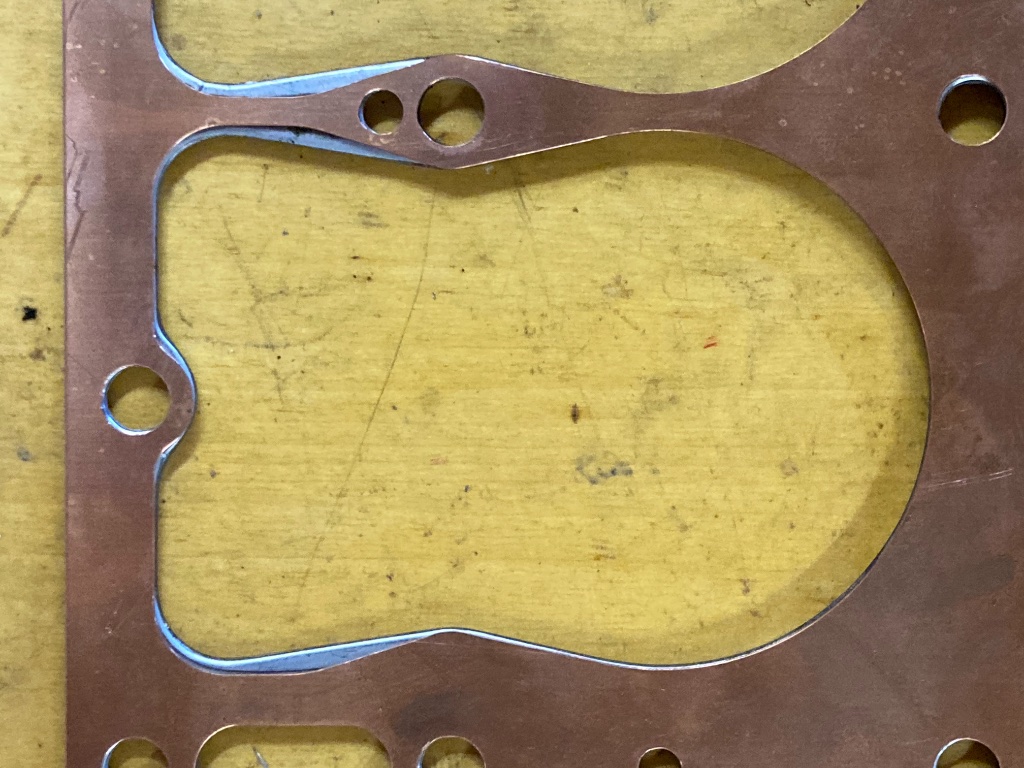 I’ve got a handful of these solid copper gaskets available. They are .040” thick and were designed to clear 1.720” valves on both sides. The pic shows the solid gasket on top of a new steel sandwich gasket