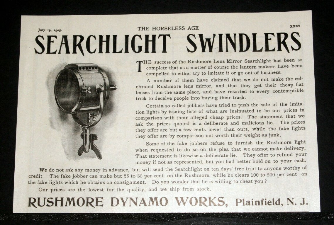 Anyone know anything about the RUSHMORE SEARCHLIGHT? Used on cars? Model T's??
