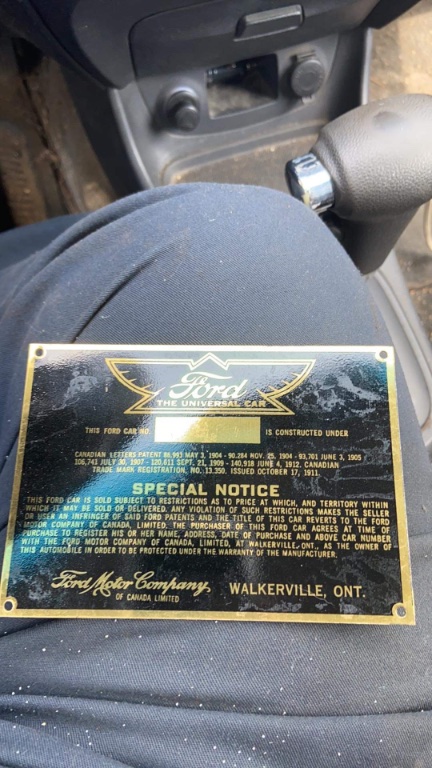 Hi Barry, the later ‘13 & 14 and later plates do say Ford, Ontario. This plate is correct. Walkerville’s name was changed to Ford City shortly after. My radiator tag says Walkerville too. This plate was only used in 1912 and very early’13 Canadian T’s. I’ve seen a few originals and they do indeed say Walkerville. In fact, there’s at least two variations of this plate with the font of the lettering. A good friend of mine has one and the number on his plate matches his engine number. Interesting because it’s my understanding that the US made cars numbers don’t match so I am told.