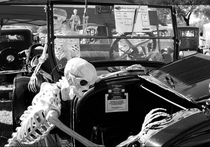 My friend Gene added some accessories to his '22 for the recent Zimmer / Color tour in SE Michigan. I snapped this after he'd loaded the car on his trailer. He has spiders and webs in the oval windows and bats by the passenger area.