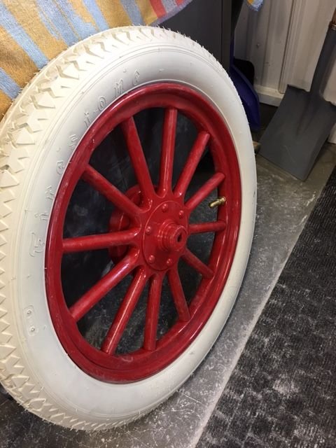 Stutzman did mine, 30 x 3-1/2 wheel for my 1911 Touring about 5 years ago, splendide and Impeccable quality either. I provided the hub and the rim and rebuilt all spokes and wood felloes. I can't be more happy. He could also sandblast your rims and hubs for additional cost if you want. Here some pictures as well. Hope that help.