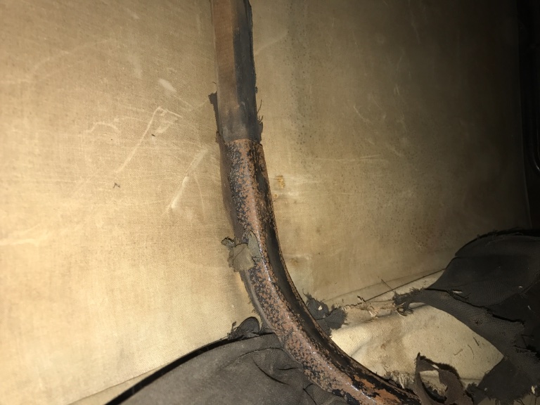 The engine has April number, I will look for the body's data, I haven't seen any metal plates--- yet, I am just going to sew up and patch the top pads and glue/sew patches on the top for now. The worst stuck bolts have been the 2 rear head bolts , very little rust, can still see die stamping scratches on the frame rails, the coils have 1962 dates except one with 58 date, $7.95 written in pencil, the rear is dry on the outside and still full of oil.