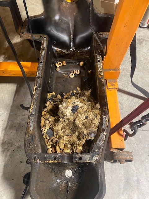 Steve that's a different form of oil dry right there! Wonder if oil in pan would discourage them?. There was just a touch of oil in mine but it was back by the transmission in the sump and the nest was at the front. Steve's looks like a mouse condo community.