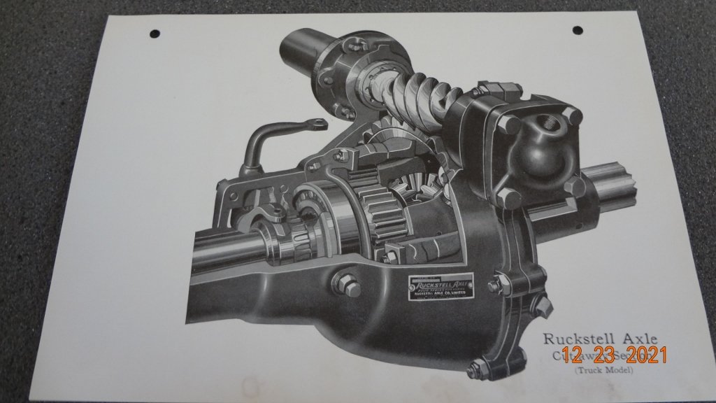 Looking thru some of my items and thought someone might enjoy the cut-away picture of the Ruckstell TT axle. Gary in MN.