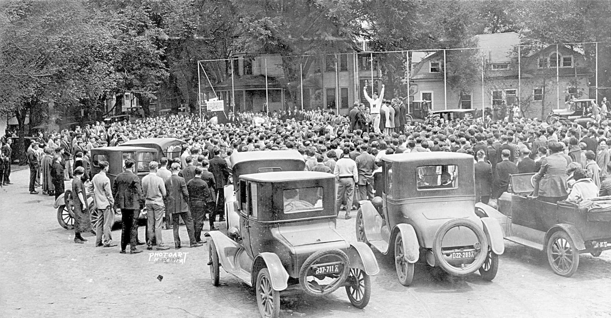 What do you suppose is going on in photo #19? The guy with his arms up looks like quite the contender! Looks like he’s wearing a Medfield college letter sweater 😄