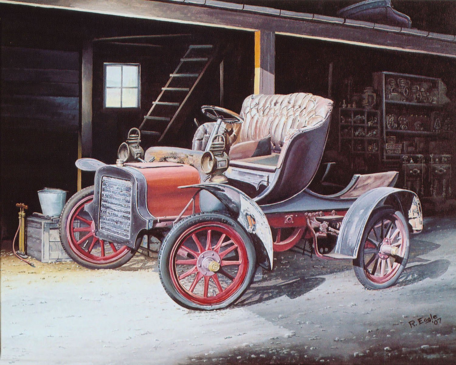 I painted this in 2005 of a Buick repair shop. I had recently purchased a 1907 Model G Buick and was reviewing photos for it.