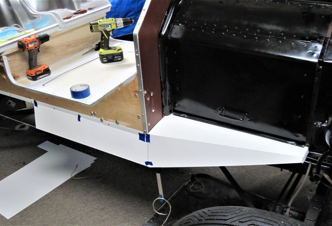 This afternoons work, make the aluminum skirts and hood shelves, not attached but held on with tape until I get some fasteners.