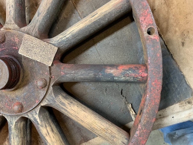 I prefer the natural look and just finished this wheel today. The picture is a before and after of the rear wheels from a 26 chassis that was turned into a farm wagon. We rescued the chassis from a barn and it was sunk in the mud for decades I’m guessing. The spokes were surprisingly sound but very dry. I took the wheel apart and sanded them to get down to the “fresh” wood and applied two coats of thinned Spar Urethane (to allow it to soak in) proceeded with about 8 coats full strength. Metal was painted with gloss Rustoleum (rattle can variety).