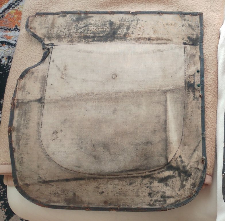 The cardboard is for trash, that is clear. It is warped and has holes kicked in, this cannot be fixed. But I want to keep the front layer (cloth with pocket), it looks very old (perhaps it is original).