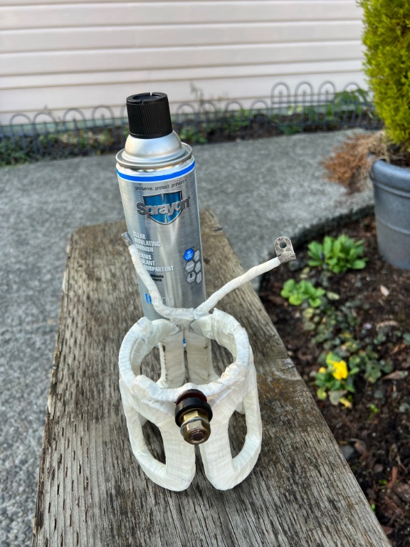 I used the 1/4” tape to replace some of the paper that was in between the coils, and one and a half rolls of the 1/2” tape for two layers around the coils. Then two coats of the spray insulating varnish.