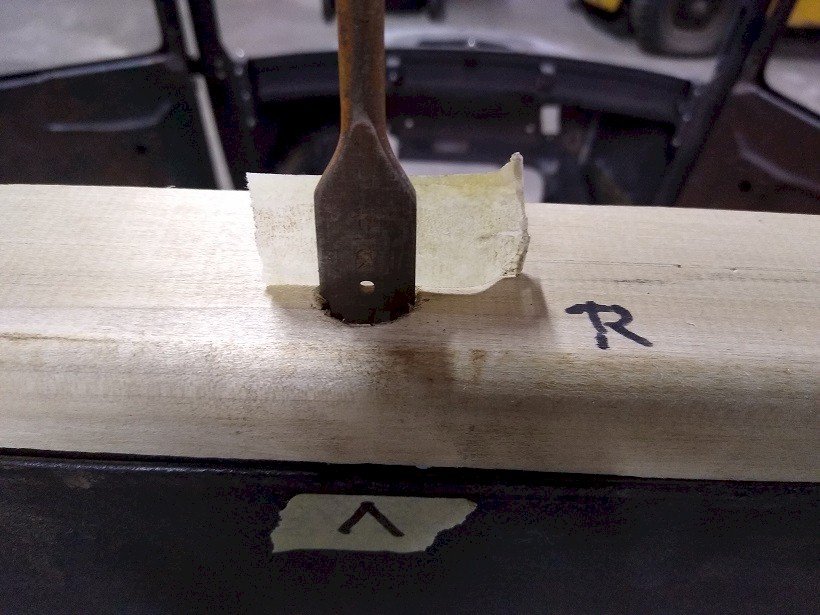 Masking tape marks front and rear on the body there the board lay for marking.