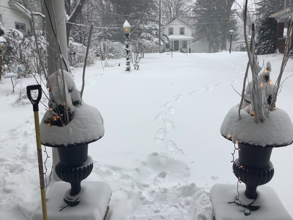 It’s against the law to be on the road here today. EVERY thing is closed. 10-12” so far and still coming heavy. Next time you want to complain about the post office, my hero was here today picking up t parts for some of you. Here is his trail.