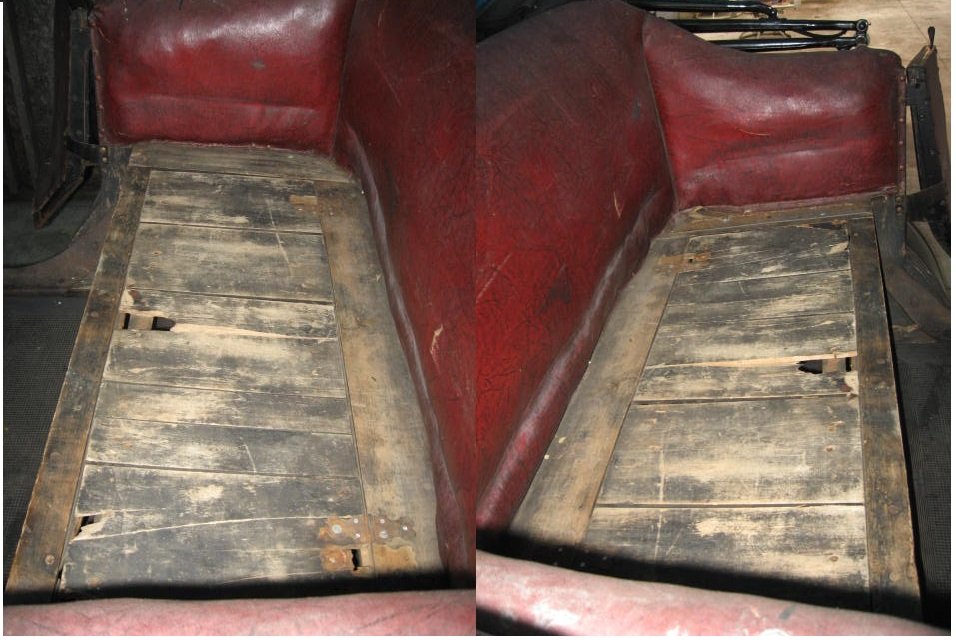Those are great photos, thanks for sharing. The wood in the back seat of my '13 touring was replaced in 1962 or 3. It has the curved out areas, but is different. I always thought the curved out area was for access to the rear fender irons?