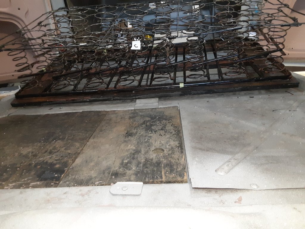 I now notice, looking at the second photo, that the rear of the wood frame is held up off of the floor by the metal piece in the middle of the floor. I am not at the garage to check but maybe the wood frame is to go under this piece!