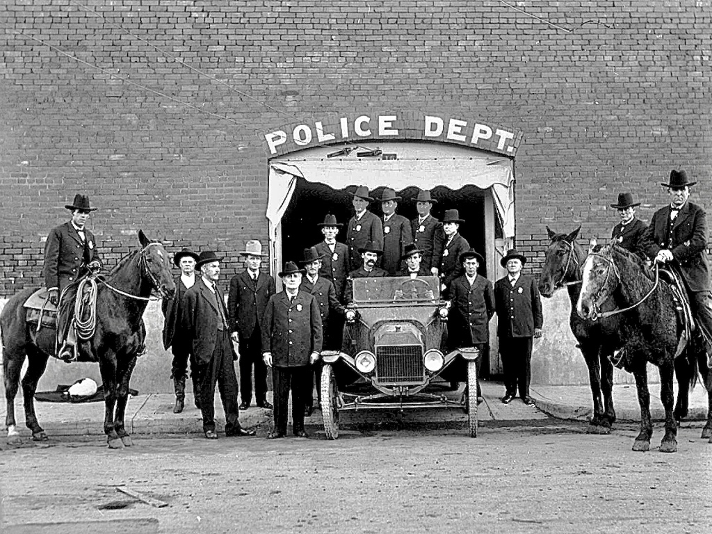 About a half block up from the Snow Flake Bakery, it looks like a could be model T speedster in the street?