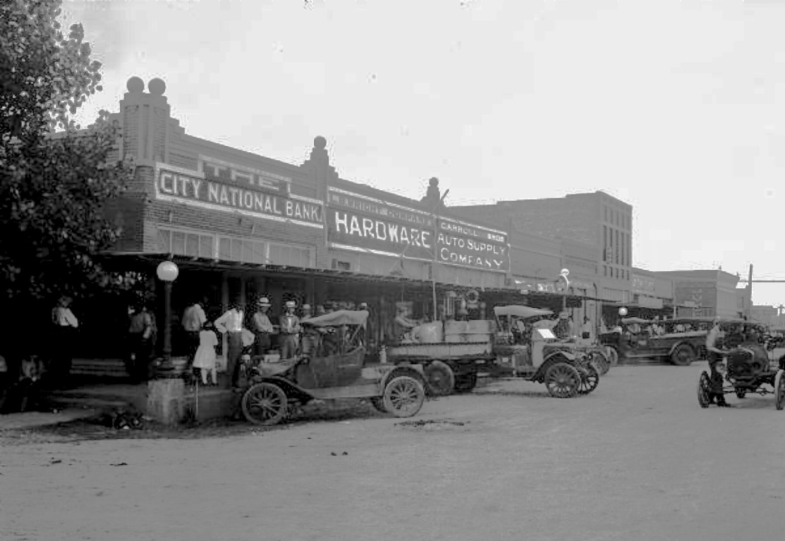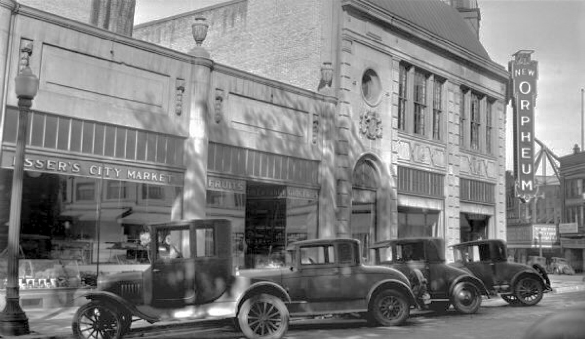 About a half block up from the Snow Flake Bakery, it looks like a could be model T speedster in the street?