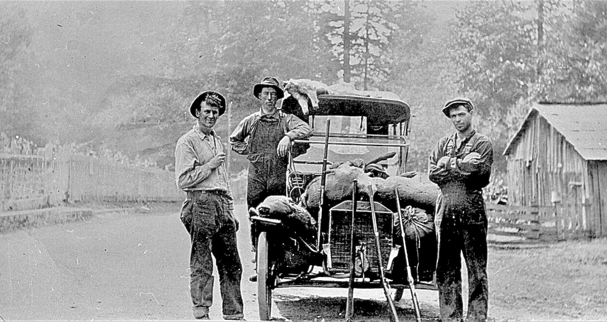 The 45th picture with the hunters? Is an N/R/S. Probably a1907 or 1908. From that view, an half covered wit stuff, I cannot tell which model it is. Probably an R.