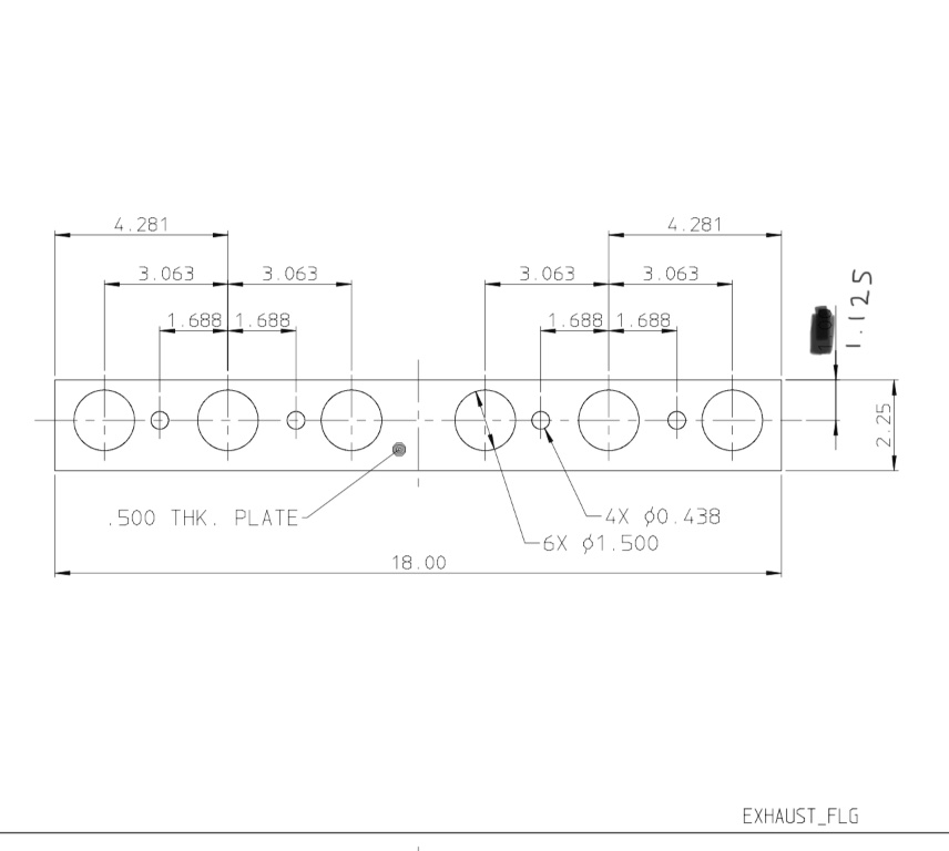 Ah found it! I believe this is the correct measurements for the model T header/intake plate. I’m gonna weld my exhaust together to this, and mount intake like pic above. Curious if I need to have some kind of indention machines into the intake ports so I can fit gasket. Not sure how others like pic above accomplished that, or if so how deep of groove to get cut into it.