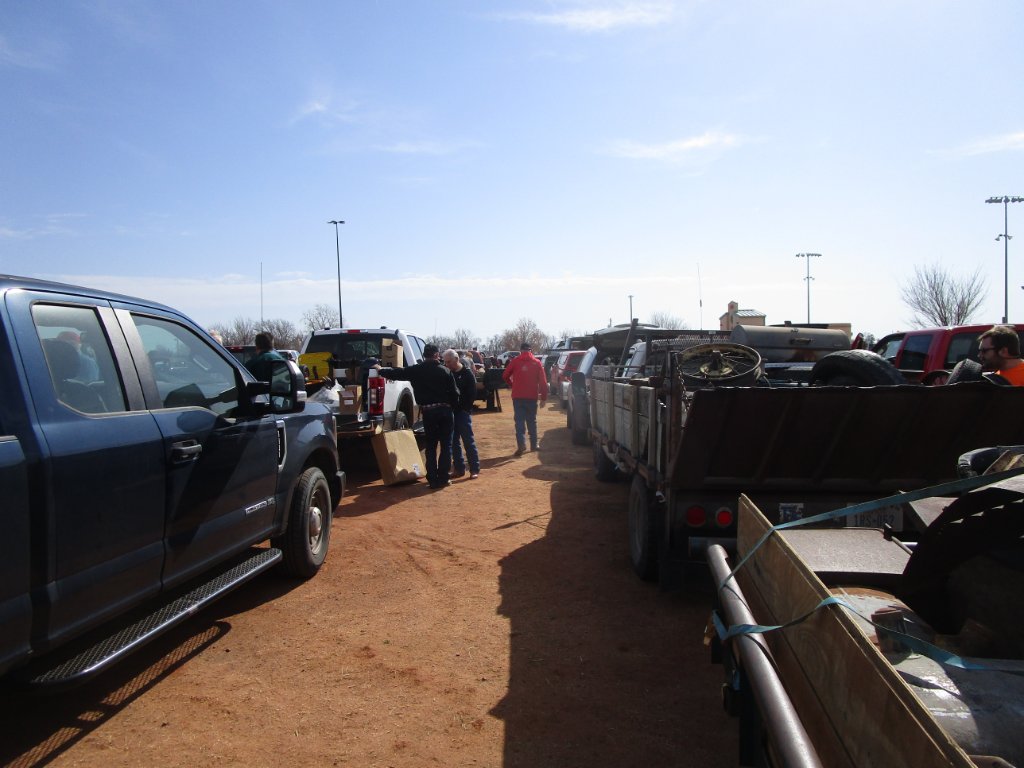 Here are a bunch of photos. There probably will be some duplicates of Steve and the other folks photos, but Ill post what I have. They will be in approx. order of when I took them, starting with the parking lot line up and ending with a picture of my truck being almost the last vehicle to leave. Then Ill show some of the treasures I found.
