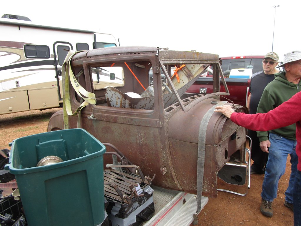 The swap meet was cold and windy this year. At first I thought there were more people there, till everyone was set up. It looked sparce this year. Maybe the gas prices or ???? kept people away. But we had fun again, met some great people, and brought home a few treasures. I sold a ton of stuff. I gave out a few good deals, but for the most part got good prices for the stuff. I did not buy a lot this year, but did buy a Rajo 35 project head. It has some freeze cracks in the water jacket but it is mostly complete, and water jacket cracks do not worry me. Im afraid it may be the start of another project .... and I also bought thirty seven NOS Boyce Moto meter radiator caps. The man I had been buying them from for many years did not have anymore for the last few years and I thought they were all gone. He passed away last year, and his family was selling the remaining parts stock that he had been bringing to Chickasha. There was a whole box full of them that they found in the last of his stuff. So I guess Ill be the new supplier of Boyce Motometer caps ...