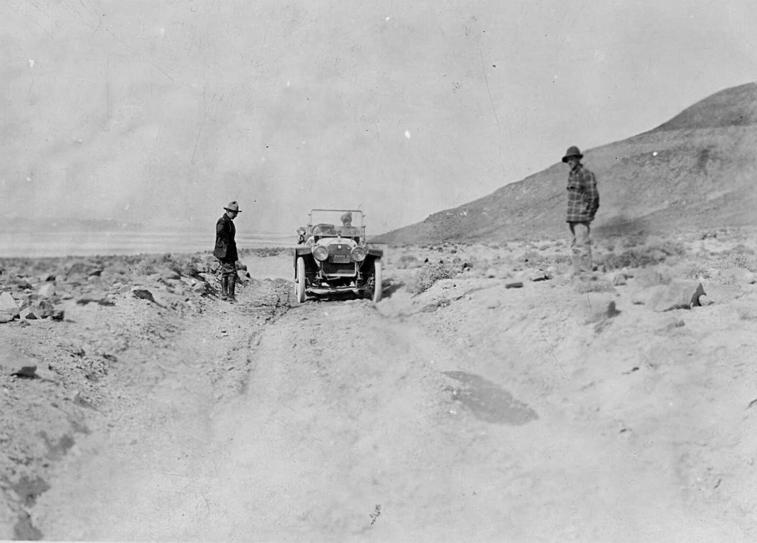 1921, somewhere out west. The wide town street is quite a contrast with the highway between towns.