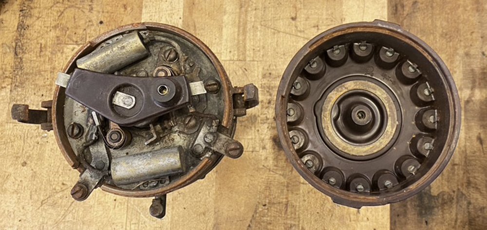 The distributor in my Green triple drive is a modified Delco 668, 1930 Studebaker that came with a 4 lobe cam and dual points and dual coils. It had been modified for 2 spark 4 cylinder and to fit a Bosch front plate. I had to buy the Bosch plate to get it but was delighted to find that it fit my Green Engineering plate perfectly.