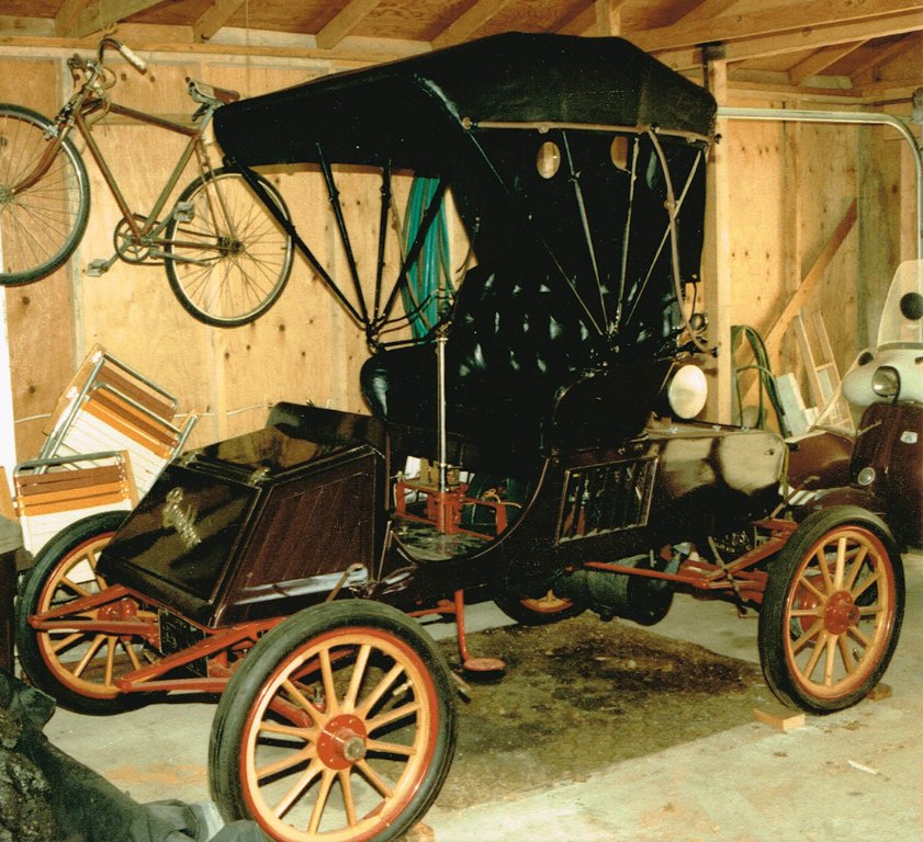 I watched our friend Joe resurrect this 1903 Rambler. It is on my trailer as purchased. He also allowed me to cover the top for him on bows he made himself. This shows it's height compared to a Model T. It was such a pleasure to watch Joe put it together over a period of years while I was building my YPC bus and some other cars. He was brilliant in finding things for it over the phone before the internet. He stumbled on a brand new body made 8 years before for another guy who backed out of the deal. The price was a bargain by then. Having others working these projects certainly kept me on track much like this Forum does now.