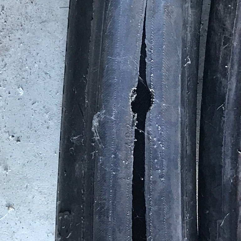 Steve is a master of replacing rubber stems with original brass... Me, not so lucky. I've tried it with mixed results. To expand on what I was saying about the clincher tire cutting rubber stems, one solution exemplified by the attached photo of a 50 year old tire shows what they used to do "back in the day". I followed the old-timer's example and ground some relief in my tires after having two stems fail from side cuts. After doing so I didn't have any more flat tires but the rubber stems still made me nervous.