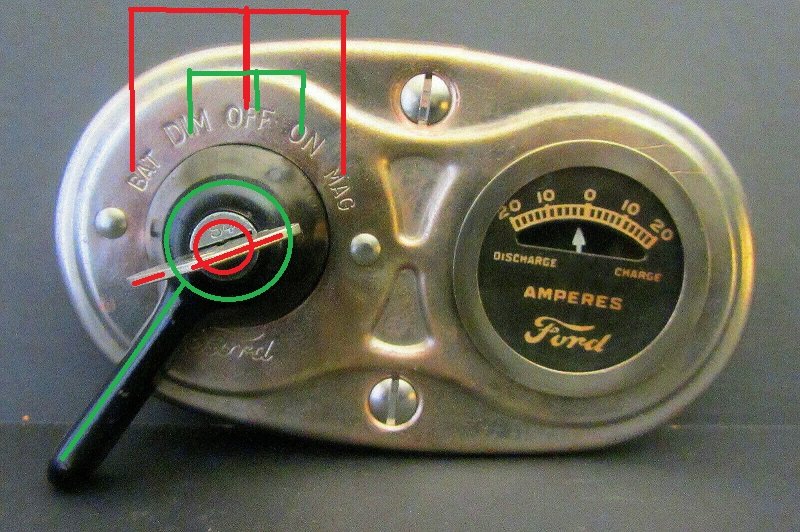 Grounding the switch plate would only be necessary if the switch had a dash light or lighted ammeter and the natural metal to metal connections were lacking a good ground at the switch plate. Some owners mounted a dash light on the rectangular ignition switch but there is no room an a '26/7Professor Fate wrote: ↑Wed Jun 01, 2022 7:03 pmGround vs. No ground.