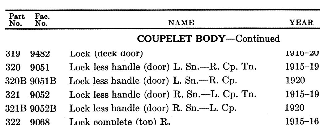 Another book lists earlier "locks for the Coupelet. The numbers are the same with different letter suffixes.