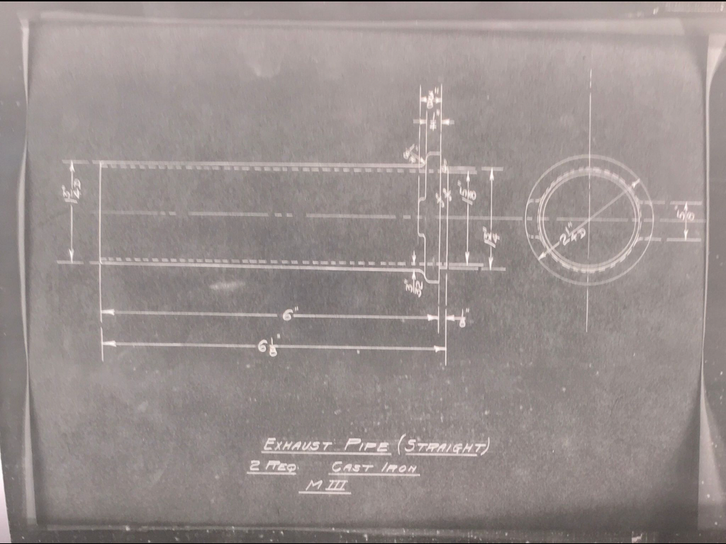 We also have the drawing below for M-III. What I suspect it may be, is a flange on the fake tank on the firewall of the racer seen in the photo with Kulick at the state fairground track. I don't know for sure, but it is referred to as a "dashtank" and I can't think of another racer component that comes close to matching this description. Labeled "M-III," we know it was for our motor/racer. The fact the flange uses wood screws tells me it's not on top of a steel gas or fluid tank, and the drawingto the left seems to imply it's mounted vertically. It would work well if it's a flange for the #4 cylinder exhaust pipe, and also may indicate the fake tank in the photo was made of asbestos, wood or some material other than metal (again, all these ideas are my best guesses, awaiting more evidence from additional photos, etc).