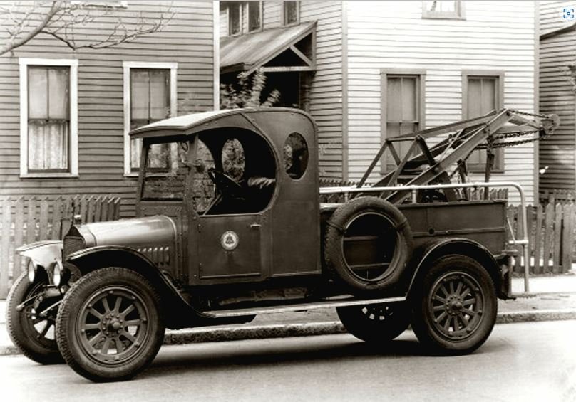 I see a caption: "1931 Indiana Bell Telephone Company tow truck (Bass Photo Company Collection, INDIANA HISTORICAL SOCIETY)" for one source. A large fleet of vehicles may have justified their own wrecker. It is a White with a similar chassis to the Yellowstone buses with 24" wheels and the same fenders. The typical gas lights were replaced by Model T headlights. The body work looks like around '26.