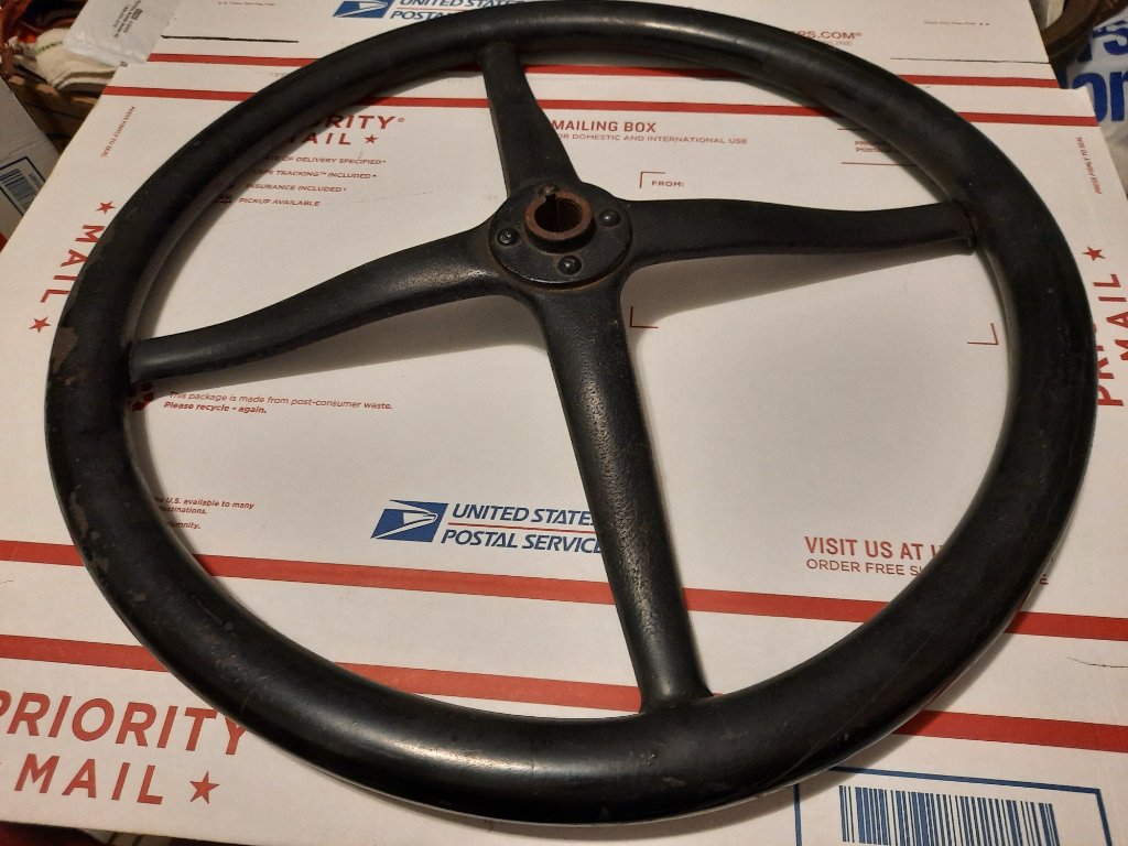 sale: I think this is an early steering wheel' It is 17" OD and cast ? very heavy and very good condition. $125 plus postage