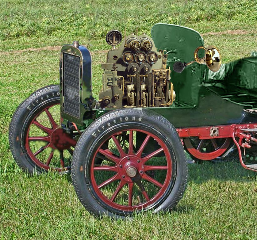 The tough, lightweight woven twine bodies shared certain advantages with the woven wickerwork tonneaus, and offered some peculiar advantages of thier own. They were indeed comfortable, and perfectly quiet. Even slamming a door generated only a muted whisper. They never dented or rusted. The bodies were fully washable and line-dryable, and could be starched if the owner wished. A starched body could be ironed and steamed to provide unique and artistic curves, planes, and creases to give a car a distinctly formal appearance, or simply washed and dried, which gave a somewhat more casual and sporty look. The bodies gained a bad reputation among cigar afficiandos and their insurors after errant cigar ashes caused some spectacular rolling conflagrations. The boll weevil disaster in the southern cotton districts put an end to the woven twine era and opened the door for Big Sheet Metal's near-total takeover of the auto body market.