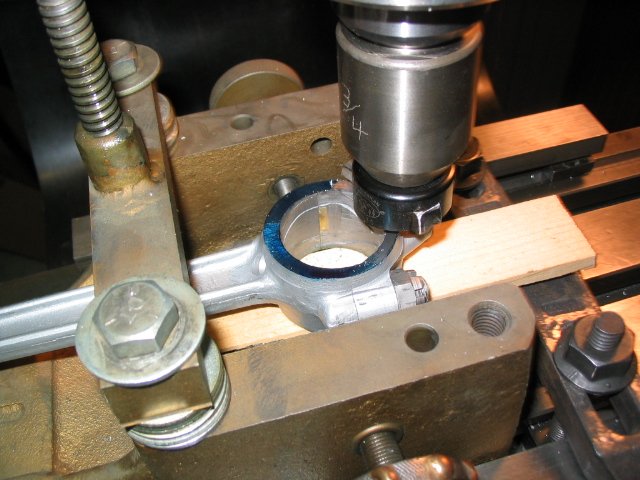 We never bore out any Model T caps because they have been filed. I built a Jig that takes T, A, and B caps, and also the rod, and machines the part lines on both. They fit together, perfectly. Also, they are machined flat to the bolt hole, both directions. If that isn't done, the Rod, and Cap will not slide together, with out binding, so you would have to beat the cap on, and beat the cap off.