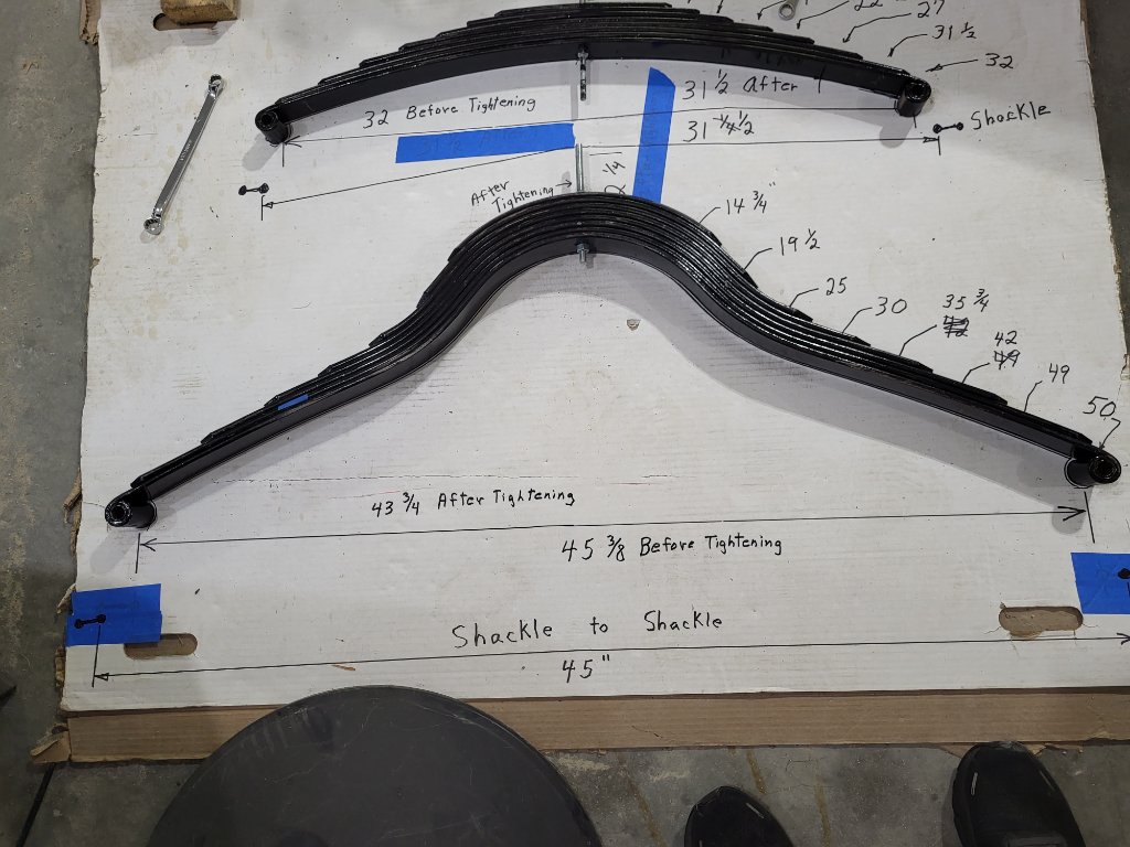 PS. Look at Neal Wilford’s rear spring compared to yours. His has a lot more space between each leaf. Looking at Neal’s rear spring, perhaps 1” between each leaf looks to be a better space.