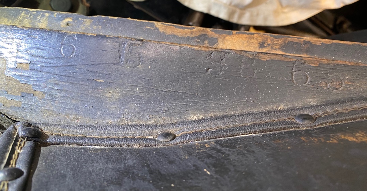 I just found the body number on my 1915 touring. It appears to read "5 6 15 38 65" followed by what looks like an "A" "M" or "N" partly hidden by the body interior. The first digit is just out of view to the left in the photo.