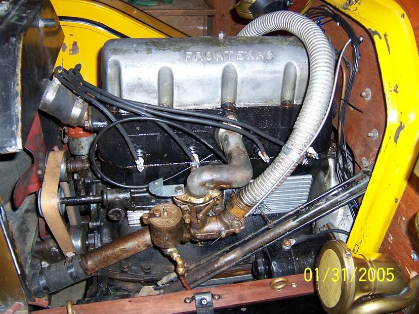 This Frontenac exhaust manifold had been repaired (at least) once before and the flanges were so thin, spacers were needed for the manifold to clear the hogshead. There is no marking on the head, but the combustion chamber measurement indicates it is a Model T.