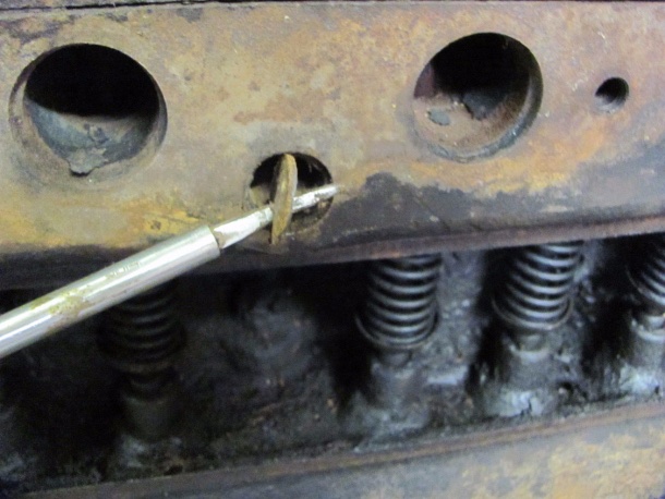 The head gasket seems to be tight, but still a lot of it is still out, first thought that the block has a crack but I suspect that there is a frost plug !?